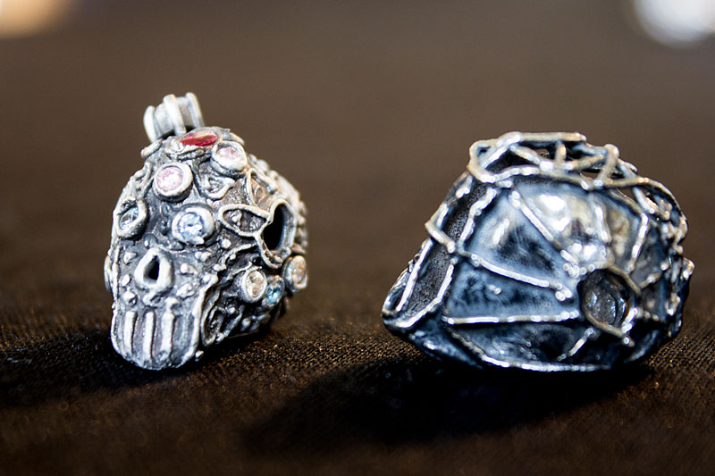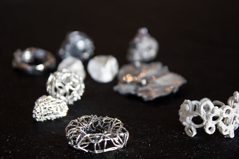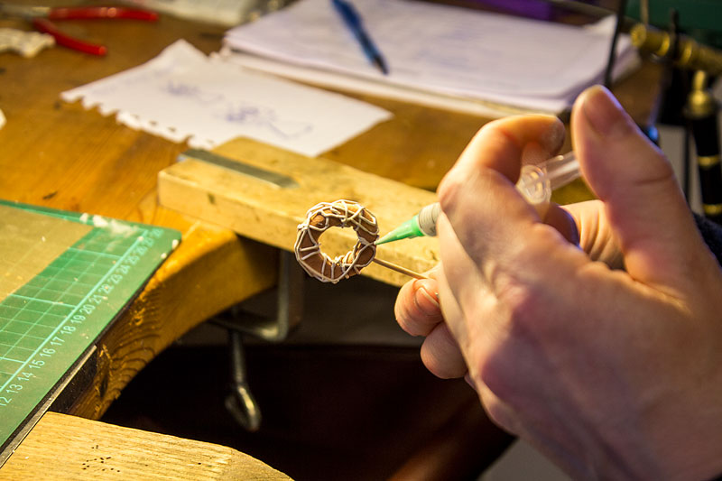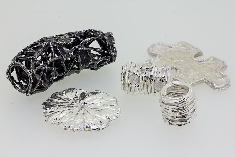 Vi vil også kombinere typerne indbyrdes og inddrage brug af halvfabrikata, fatninger og syntetiske sten. Vi fremstiller vedhæng, brocher og fingerringe.